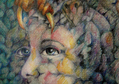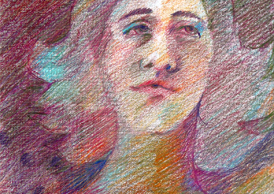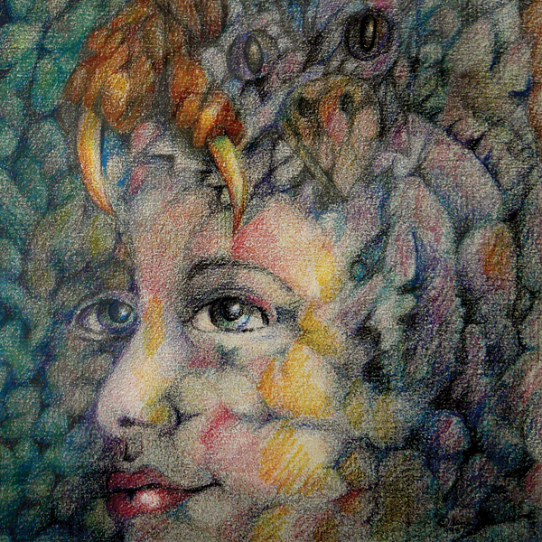 My first color pencil drawing series was the "Feelings" series. It was all done in Prismacolor pencil and graphite. I had decided to play with a technique of layering the Prismacolor pencils with texturing layers of hard graphite. I had read about this way of working with pencils in a magazine. At the same time, I was deeply involved in the experience of going through an emotional awakening.