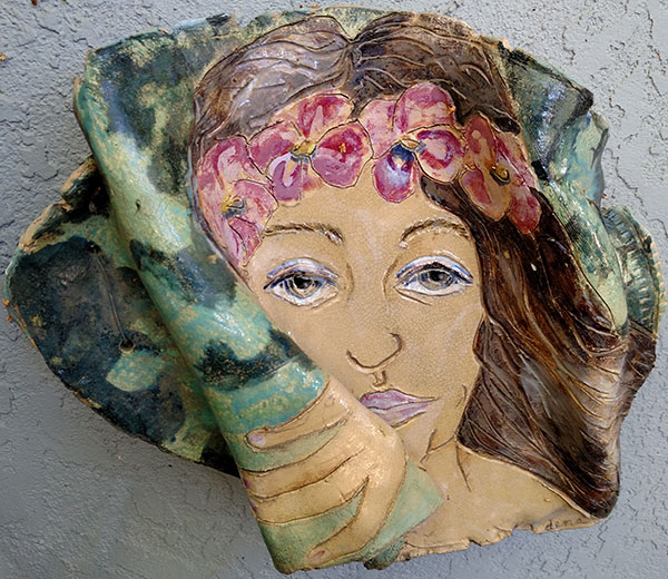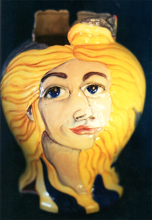 One of these was a Susan and Steven Kemenyffy workshop. At that time, this husband and wife were collaborating on their large vessel pieces. In the workshop, they demonstrated on a large slab piece. Watching Susan draw one her beautiful women on the pre-fired clay, and painting it with underglazes was inspirational to me. I decided I wanted to play with clay more.