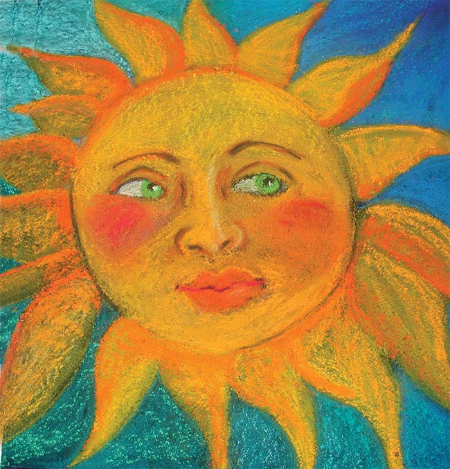 I love the feel of the media. It is much like pastel painting on a good toothed paper, only you can’t layer too much chalk. If you add too much, it blows away. If it rains or someone drops a drink, it washes away. That’s part of the appeal to me. It is so fragile and temporary.