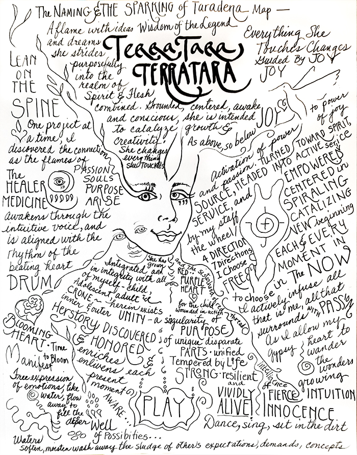 I include below several pages from my journal during the process of painting TerraTara, including the naming of her. Click on an image to see it larger.