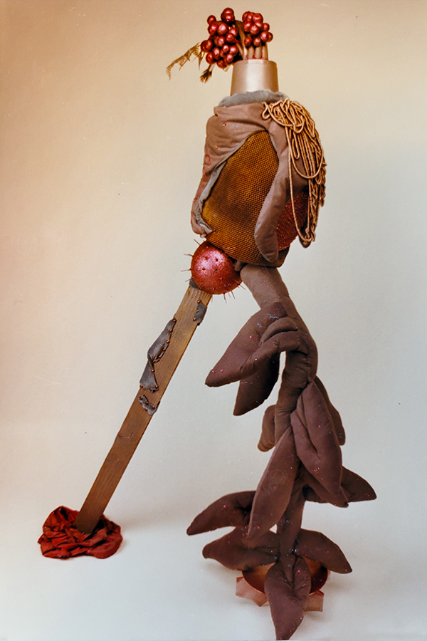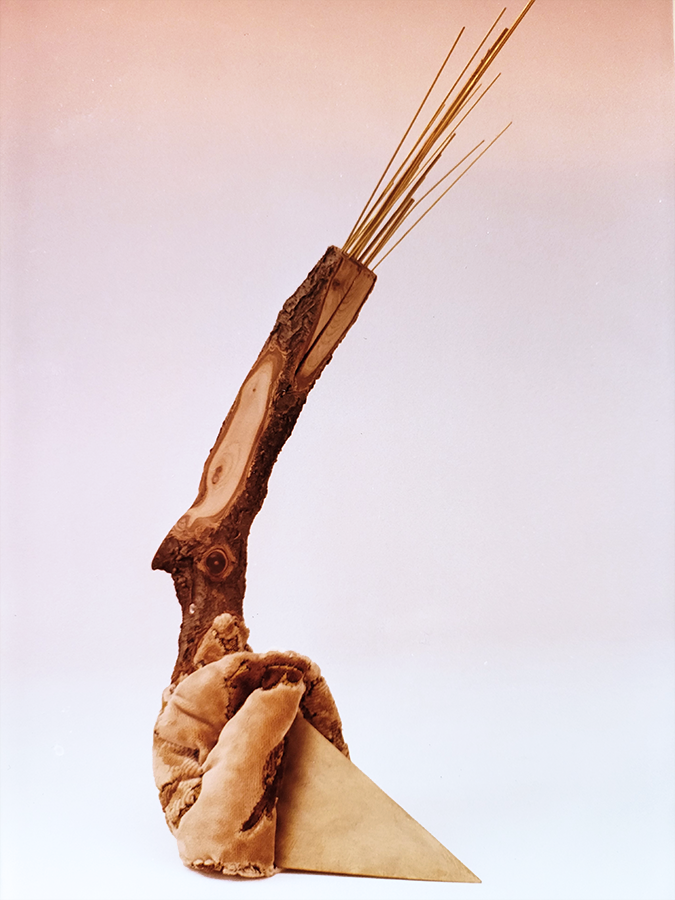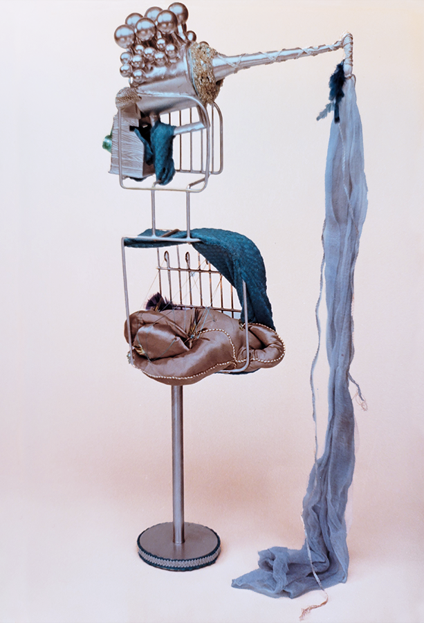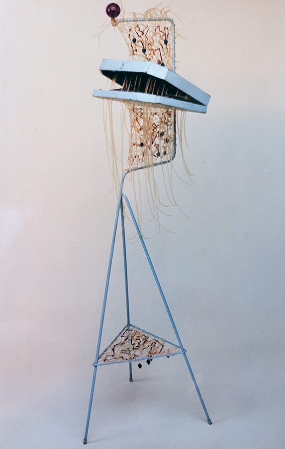 I use "mixed media" as the material for these visual metaphors. These consist of combinations of discarded "readymades" (manufactured items), natural forms, and self-constructed forms. The various shapes of these "found" items act as a catalyst to the process of intuitive synthesis, initiating the construction. A chain reaction occurs, as one spark leads to another. I fit them together (altering them as necessary), until the final flash has occurred, and the metamorphosis is complete.