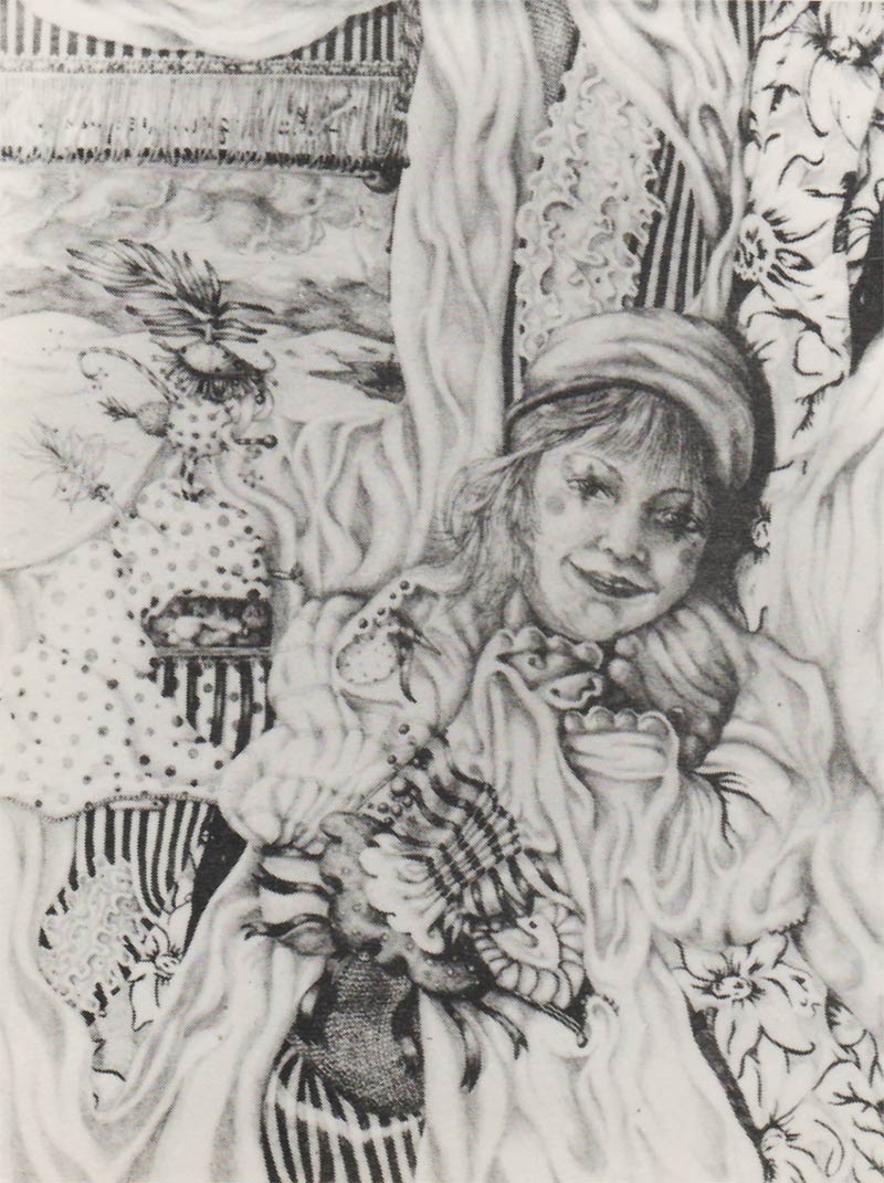 Right around the time my second daughter was born I had gotten a bit tired of either drawing just faces or else the involved abstracts from my sculpture journal, so I did a series of pencil drawings which borrowed from a collage approach to subject matter, instead. This drawing call “Serra” was a forerunner of that series. These drawings were quite involved with intricate detail.